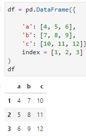 만약 여기서 index와 columns를 별도로 지정해주지 않으면 어떻게 될까요?