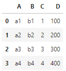 df = pd.DataFrame({'A' : ['a1', 'a2', 'a3', 'a4'],
