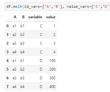 여기서 결국 중요한 메소드는 id_vars, value_vars 입니다.
