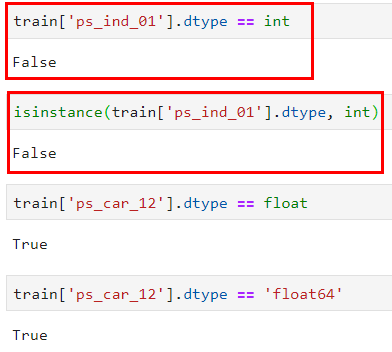 근데, 조건문에 해당 컬럼의 dtype가 int가 맞는데도 불구하고 자꾸 False가 뜨니까